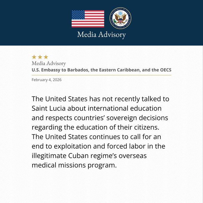 Then came Washington's response—not through private diplomatic channels, but via a public Media Advisory designed for maximum visibility: "The United States has not recently talked to Saint Lucia about international education and respects countries' sovereign decisions regarding the education of their citizens."
