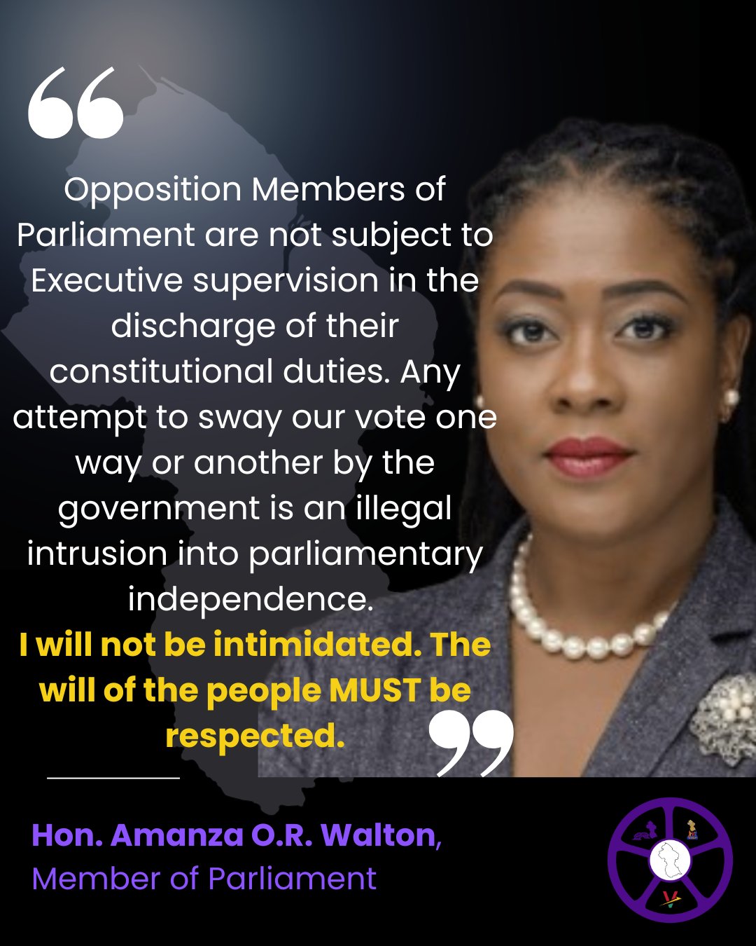 Opposition Members of Parliament are not subject to executive supervision in the discharge of their constitutional duties. Any attempt to sway our vote one way or another by the government is an illegal intrusion into parliamentary independence.
