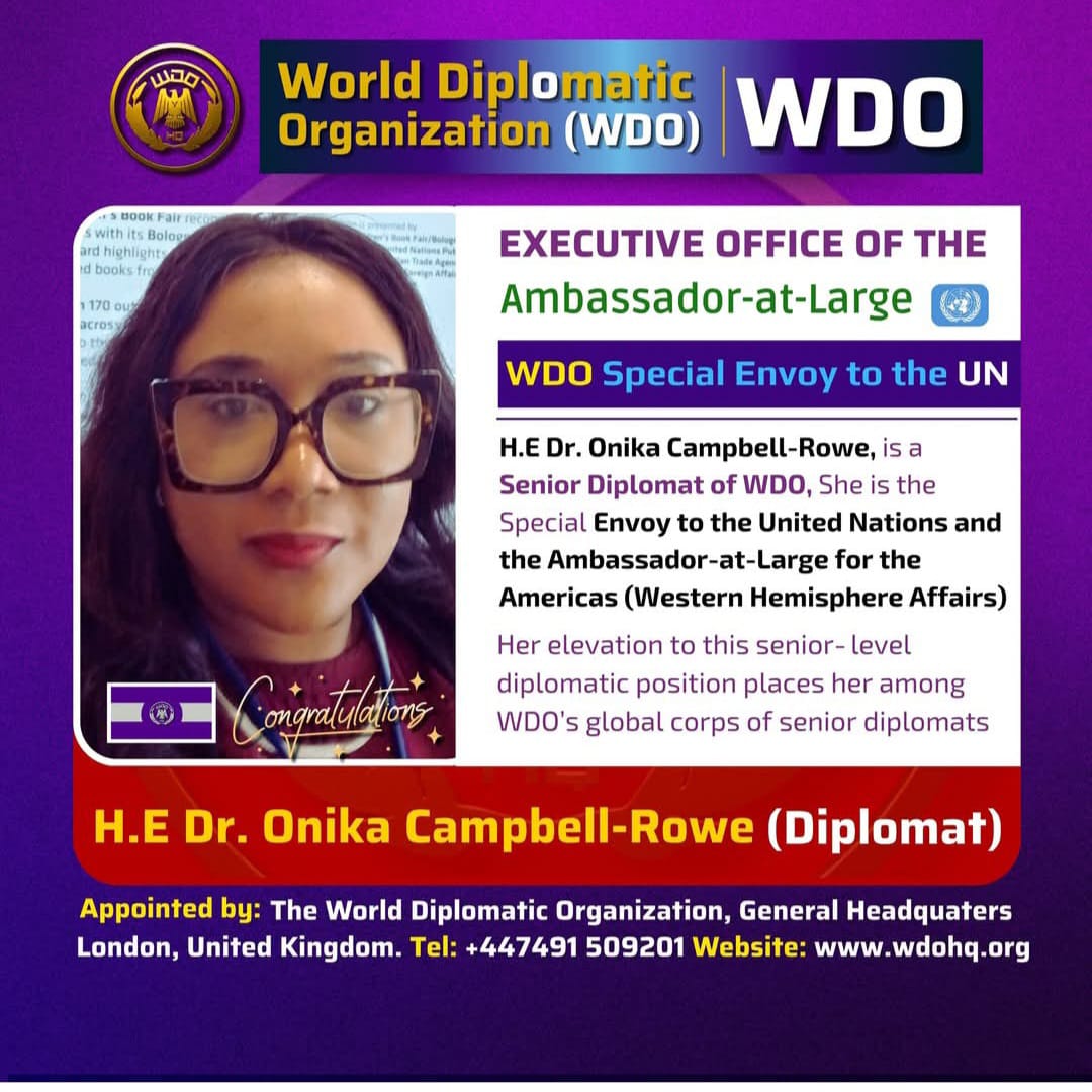 In a move that carries profound significance for the Caribbean diaspora, Dr. Onika Campbell-Rowe has been formally accredited as the Special Envoy of the World Diplomatic Organization (WDO) to the United Nations, effective December 19, 2025.