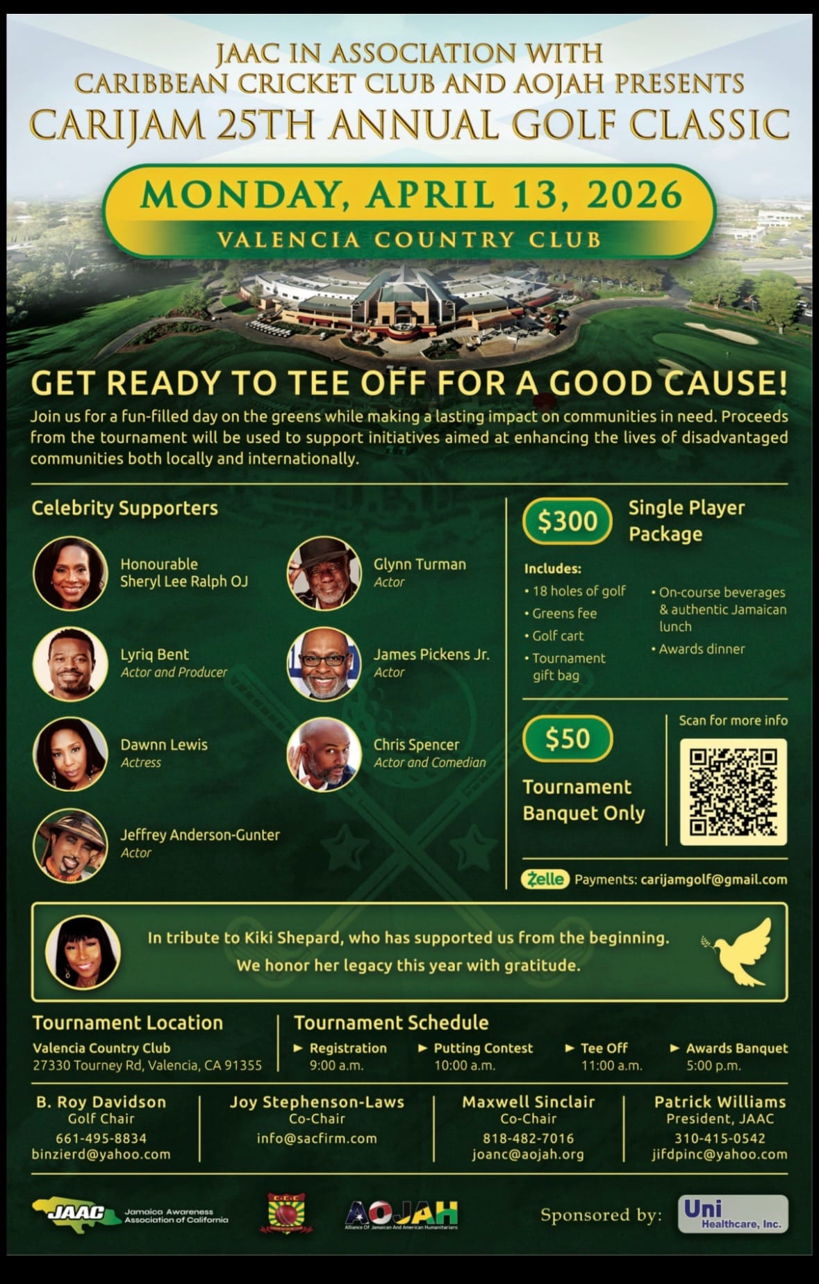 On Monday, April 13, 2026, that love will take centre stage at the Valencia Country Club as the Jamaica Awareness Association of California (JAAC), the Caribbean Cricket Club (CCC), and the Alliance of Jamaican and American Humanitarians (AOJAH) host the 25th Annual CARIJAM Celebrity Golf Classic — a milestone event that is equal parts celebration, solidarity, and service.